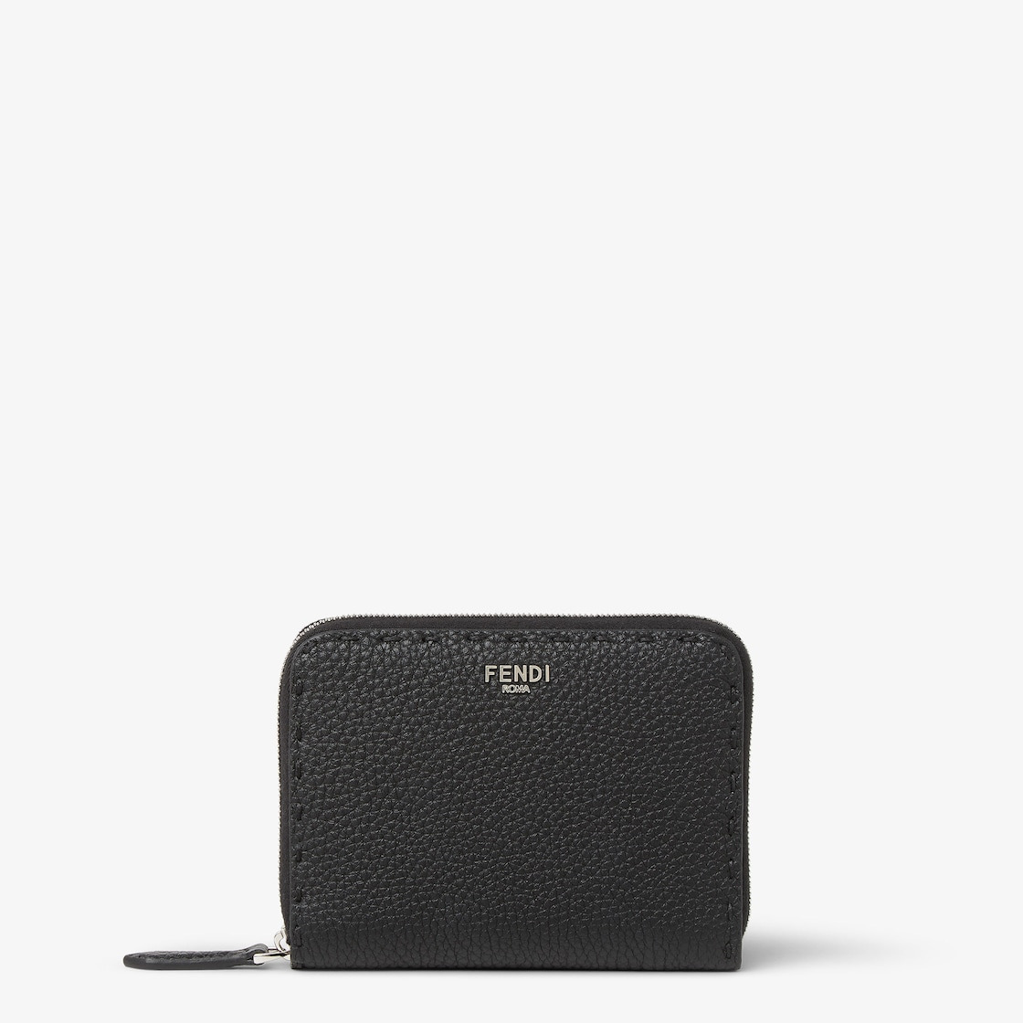 Wallet with zipper. Interior organized with three card holder slots and gusseted pocket with press stud. Made of black Cuoio Romano leather, finished with 106 hand-sewn, matching Selleria macro topstitches, an emblem of the iconic Selleria workmanship handed down through generations of Fendi artisans since 1925. Black Cuoio Romano leather lining. Palladium-finish metalware. Made in Italy Composition: 100% calf leather, inside: 53% cotton, 47% polyurethane Product Code: 7M0374AP3BF0GXN
