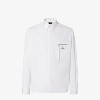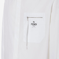 Boxy long-sleeved shirt. Zipper pocket on the chest. Covered button closure. Made of white cotton poplin. The breast pocket is finished with a contrasting Fendi Roma logo and Fendi O'Lock slider. Made in Italy Composition: 100% cotton, 13 buttons: mother-of-pearl Size worn: 48 IT. The model is 188 cm tall Product Code: FS1098AN08F0QA0