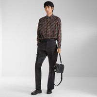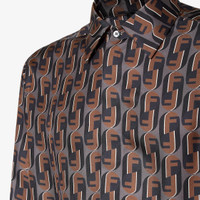 Shirt with button-down collar and long sleeves. Comfort fit. Front closure with concealed buttons. Made of silk with Fendinity all-over print in brown and black. Made in Italy Composition: 100% silk, 13 buttons: mother-of-pearl Size worn: 48 IT. The model is 188 cm tall Product Code: FS1319AVDBF1TRS