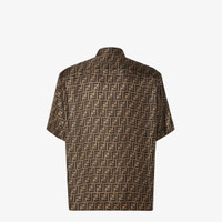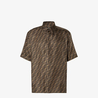 Oversized shirt with Italian-style collar and short sleeves. Concealed button fastening. Made of silk with FF motif printed all over in brown and tobacco. Made in Italy Composition: 100% silk, 8 buttons: mother of pearl Fit: Regular Size worn: 48 IT. The model is 189 cm tall Product Code: FS0795AKEEF1440