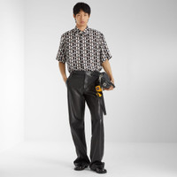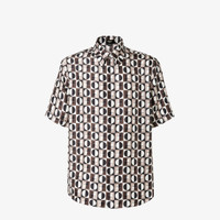 Shirt with button-down collar and short sleeves. Straight cut. Front closure with concealed buttons. Made of silk with a 3D-effect Fendi Optical all-over print in brown, black and white. Made in Italy Composition: 100% silk, 11 buttons: mother-of-pearl Size worn: 48 IT. The model is 188 cm tall Product Code: FS1334AVDMF05AE