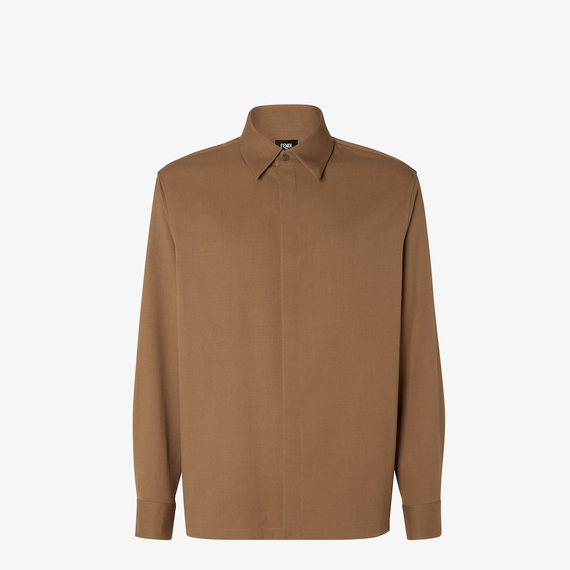 Long-sleeved shirt. Front closure with concealed buttons. Made from rust-colored wool gabardine. Embellished with embossed FF on the back of the collar. Made in Italy Composition: 100% fleece wool, 13 buttons: mother-of-pearl Product Code: FS1329AU60F0QE1