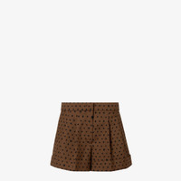 Flared shorts with double pleat on the front. Side pockets and turned-up hem. Concealed zipper and hook closure. Made in a brown, stretch wool blend fabric with an all-over, contrasting Falena Dots micro motif print. Made in Italy Composition: 94% fleece wool, 4% polyamide, 1% elastane, 1% silk, pockets: 100% silk Product Code: FR6690AW7EF1UKN
