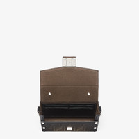 Soft Trunk Baguette bag made of fabric with FF Eclissi jacquard motif, hand shaded at the edges. Flap with magnetic FF clasp. Trimmed with black leather. Microfiber-lined interior, with 6 leather card holder slots and palladium-finish metalware. The black tech fabric cross-body shoulder strap with FENDI lettering is adjustable and detachable. Made in Italy Measurements: - Height : 13 cm - Depth : 6.5 cm - Width : 21.5 cm - Weight : 0.41 kg Composition: 100% calf leather, interior: 100% calf leather, 90% polyester, 10% polyurethane Product Code: 7VA565APD8F0L3T