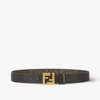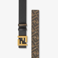 Reversible belt with FF Squared stud buckle. Made of brown and tobacco FF jacquard fabric. Black leather lining. Metal accessories in a vintage-gold finish. Made in Italy Measurements: - Width : 3.5 cm Composition: 100% calf leather, back: 49% polyurethane, 28% cotton, 23% polyester Product Code: 7C0424AGR9F1OM0