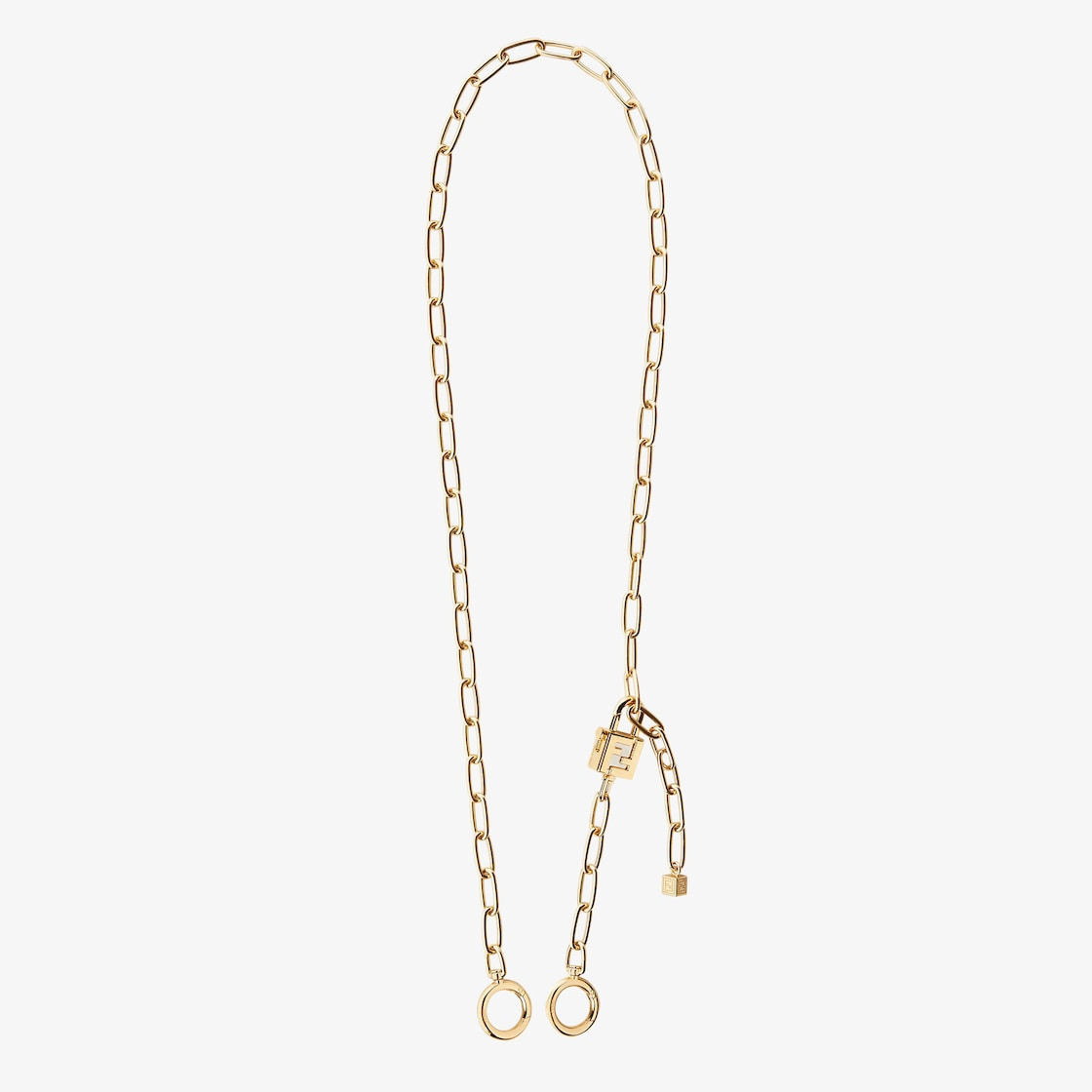 Chain shoulder strap with double snap hook, to use in combination with any bag with hooks. The small padlock-shaped charm with FF motif allows you to adjust the length to use on the shoulder or across the body. Made of gold-finish metal. Made in Italy Composition: 100% brass Product Code: 8AV983NQ9F0CFK