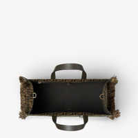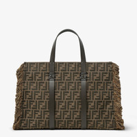 Summer Tote bag with a spacious, lightweight design and refined details. Made of jacquard fabric with the iconic FF motif, decorated with small ebony-black fringes along the edge. Dark brown calfskin handles hug the body of the bag and are anchored with the hand-sewn FF detail. Featuring a spacious, jacquard-lined compartment, inside zipper pocket and small clip clasp. Gold-finish metalware. Can be carried by hand or worn crossbody thanks to the handles and removable shoulder strap. Made in Italy. Composition: 75% polyester, 17% cotton, 8% elastane, 100% calf leather, inside: 63% cotton, 34% polyester, 3% acrylic Product Code: 8BH435AFPMF1GL7