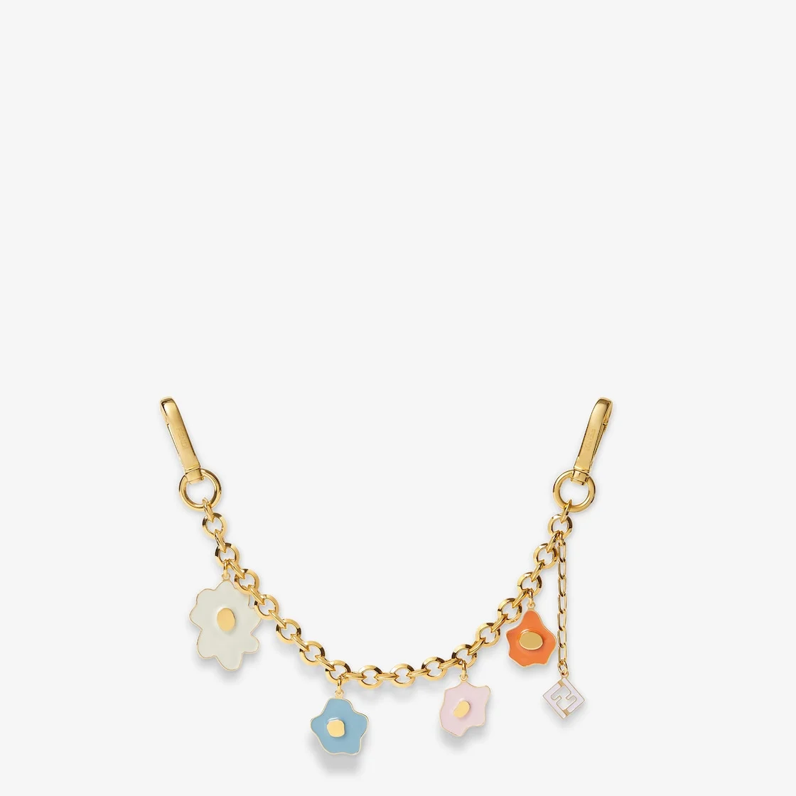Chain charm with customized double snap hook. Decorated with Sunny Side Flowers elements in metal, multicolor enamel and Squared FF logo tag. Gold-finish metalware. Made in Italy Composition: 100% brass Product Code: 7AS502B09F0WQG
