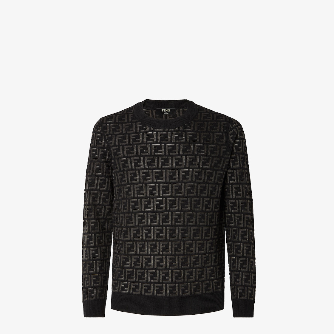 Regular-fit, crew-neck sweater. Made with black wool. The FF motif inlaid in nylon creates a sheer effect in the same tones. Made in Italy Composition: 100% Fleece wool, 100% Polyamide, 1 button: Mother-of-pearl Fit: Slim Product Code: FZY063AAUQF0QA1
