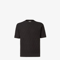 Crew-neck sweater with short sleeves. Made of black cotton yarn with all-over FF logo in the same color. Embellished with ribbed edges. Made in Italy Composition: 100% cotton Size worn: 48 IT. The model is 188 cm tall Product Code: FZX051AUW0F0QA1