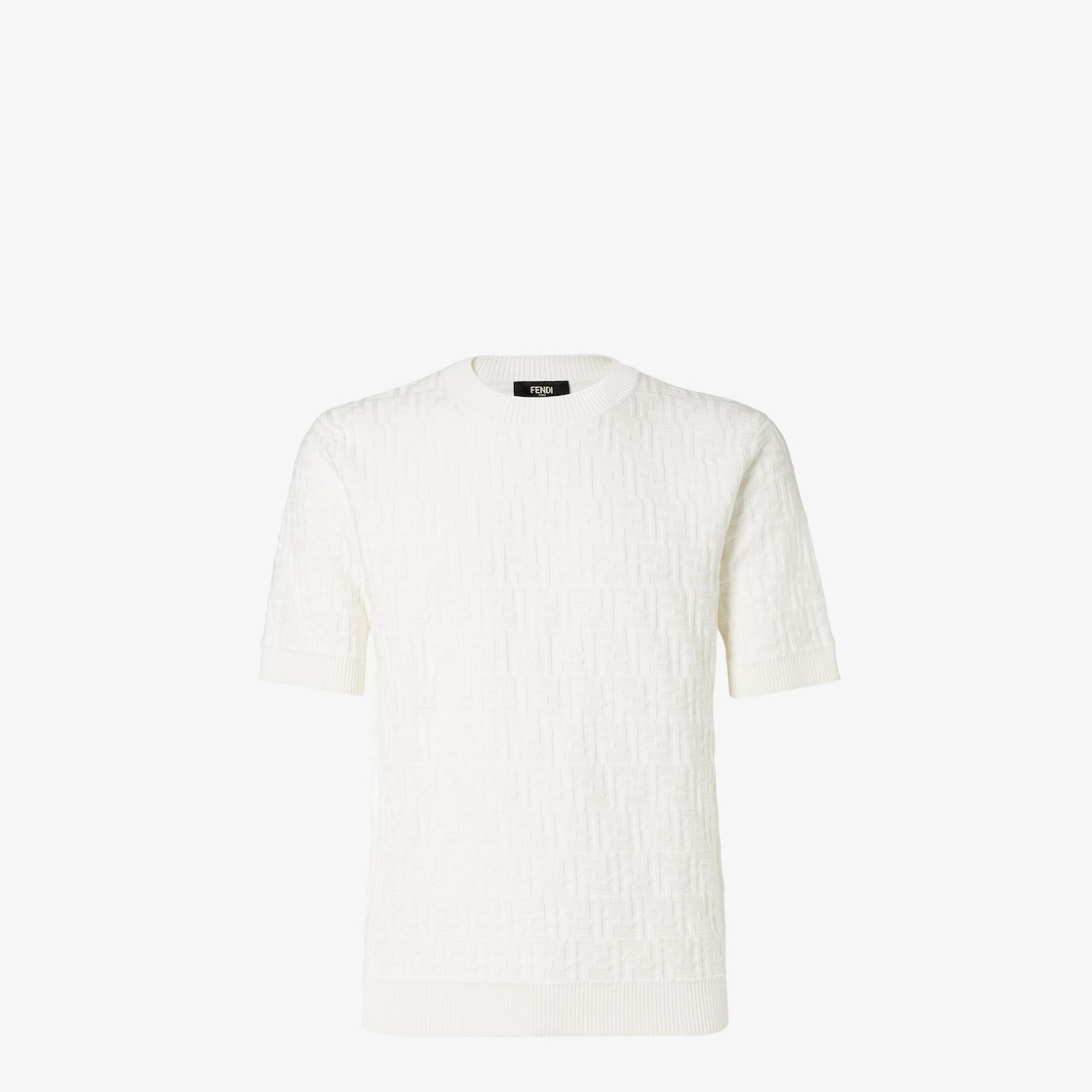 Crew-neck sweater with short sleeves. Made of white cotton yarn with all-over FF logo in the same color. Embellished with ribbed edges. Made in Italy Composition: 100% cotton Product Code: FZX051AUW0F0QA0