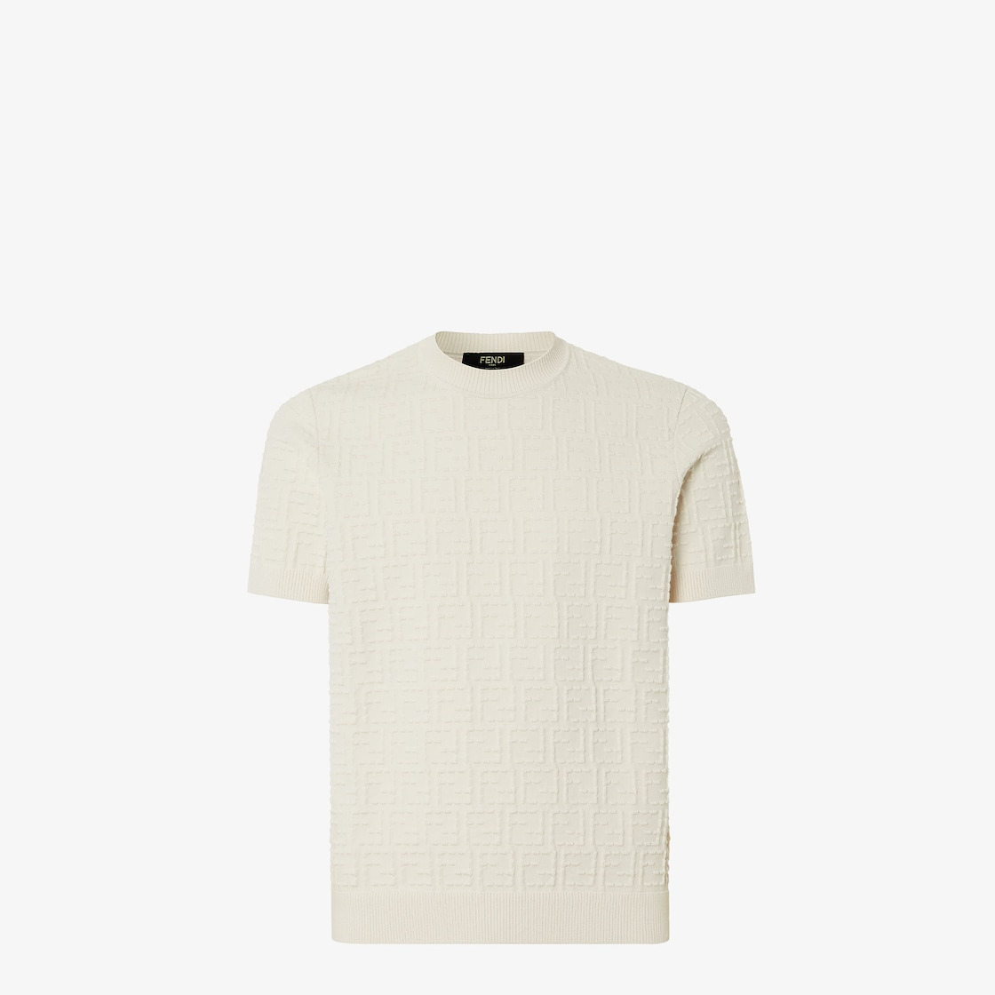 Crew-neck sweater with short sleeves. Made of beige cotton yarn. Embellished with matching color all-over FF Selleria stitching. Embellished with ribbed edges. Made in Italy Composition: 85% cotton, 15% polyamide Size worn: 48 IT. The model is 179 cm tall Product Code: FZX051AU7OF1BJD