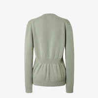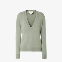 Oversized pullover with ribbed elastic waistband insert on the back. Deep V-neck and long sleeves with dropped shoulders. Made of sage green cashmere jersey. Finished with ribbed edges and matching Fendi Roma logo embroidered on the left side. Made in Italy Composition: 100% cashmere Product Code: FZXD89AYLSF1T6E