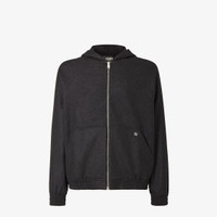 Hooded sweatshirt with drawstring and raglan sleeves. Elasticated cuffs and hem. Pouch pocket at the front. Front zipper closure. Made of dark gray cashmere. Micro FF detail in palladium-colored metal on the left pocket. Made in Italy Composition: 98% cashmere, 2% elastane, lining: 100% cupro Size worn: 48 IT. The model is 187 cm tall Product Code: FAF753AVINF0TY6