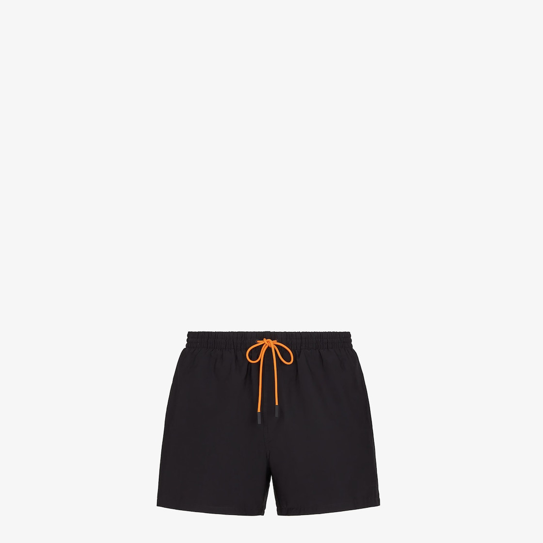 Swim shorts with elastic waistband and drawstring. Made of black nylon. When wet, the fabric reveals a matching tone FF motif. Embellished with orange ties. Made in Italy Composition: 92% polyamide, 8% elastane, lining: 91% cotton, 9% polyamide Fit: Regular Size worn: 48 IT. The model is 188 cm tall Product Code: FXB077AGBRF1KQR