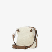 Toast-shaped mini-bag with zipper. The bag can be worn on the shoulder thanks to the adjustable, detachable shoulder strap. Made of white shearling with brown FF inlay. Brown leather details. Palladium-finish metalware. Made in Italy Composition: 100% sheep fur, 100% calfskin, inside: 63% cotton, 34% polyester, 3% acrylic Product Code: 7AS311ASLCF1QC1