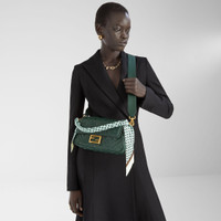 Two-sided wrappy. Can be worn around the neck, knotted at the wrist or used to accessorize a bag with a touch of color. Made of silk. Decorated with Fendi Dots motif in green, featuring micro polka dots interwoven with diagonal stripes and FF logo. Finished with contrasting color block edges. Made in Italy Composition: 100% silk Product Code: FXT011AYLBF0B8X