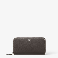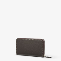 Wallet with zipper. Organized into three gusseted compartments with eight card slots and a zipper pocket. Made of dark brown Cuoio Romano leather, finished with 164 hand-sewn macro topstitches, an emblem of the iconic Selleria workmanship handed down through generations of Fendi artisans since 1925. Beige Cuoio Romano leather interior. Palladium-finish metalware. Made in Italy Composition: 100% calfskin, inside: 100% calfskin, 62% cotton, 38% polyurethane Product Code: 7M0210AP3CF1RI3