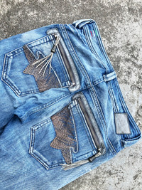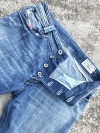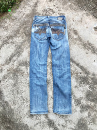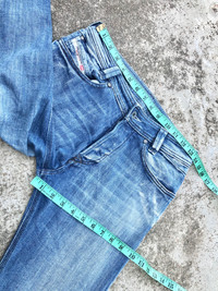 button fly recommended for user size 26/27 waist : 27 inches length(outseam) : 41 inches length(inseam) : 31 inches thigh : 20 inches leg opening : 14 inches knee : 15 inches front rise : 9.5 inches CONDITION : 8.5/10 good we are selling used item.., kindly please see picture for more details.., make sure your size is correct.., NO RETURN,EXCHANGE OR REFUND item sold as it is.. please contact me for any question about this item., make sure leave your phone number when make a purchase for shipping process.,we are using DHL express.., THANK YOU SELLER CODE : L207 GNV