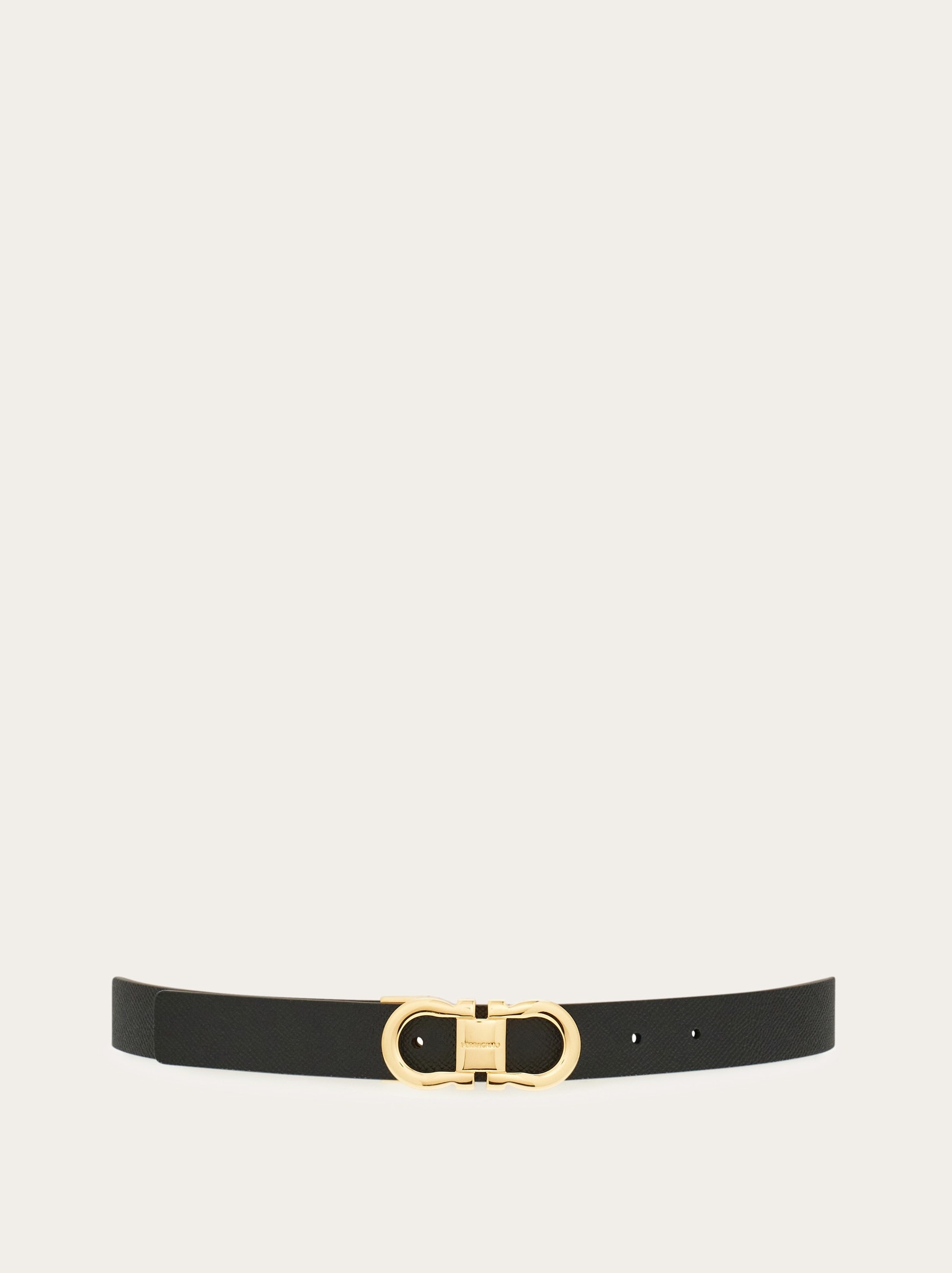 Made of hammered calfskin leather, this slim elegant Ferragamo belt is two tone reversible. Featuring a golden Gancini buckle with a custom squared central plaque. The adjustable length allows for a more personalized fit and style. We invite you to check our size guide for more information. - height 0.9 IN - Composition: hammered calfskin - Made in ITALY - Product code: 230294 780407