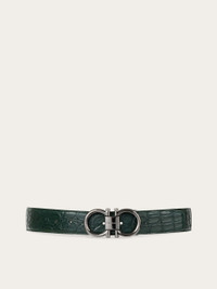 This elegant belt is chic and timeless with a contemporary flair. Made of precious crocodile leather with a shiny finish, it has an adjustable strap with a Gancini buckle with rounded edges in a cool, palladium finish. The central plate has an engraved signature to confirm its place among the icons. The adjustable length allows for a more personalized fit and style. We invite you to check our size guide for more information. - height 1.3 IN - Composition: alligator - Made in ITALY - Product code: 679952 787192
