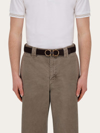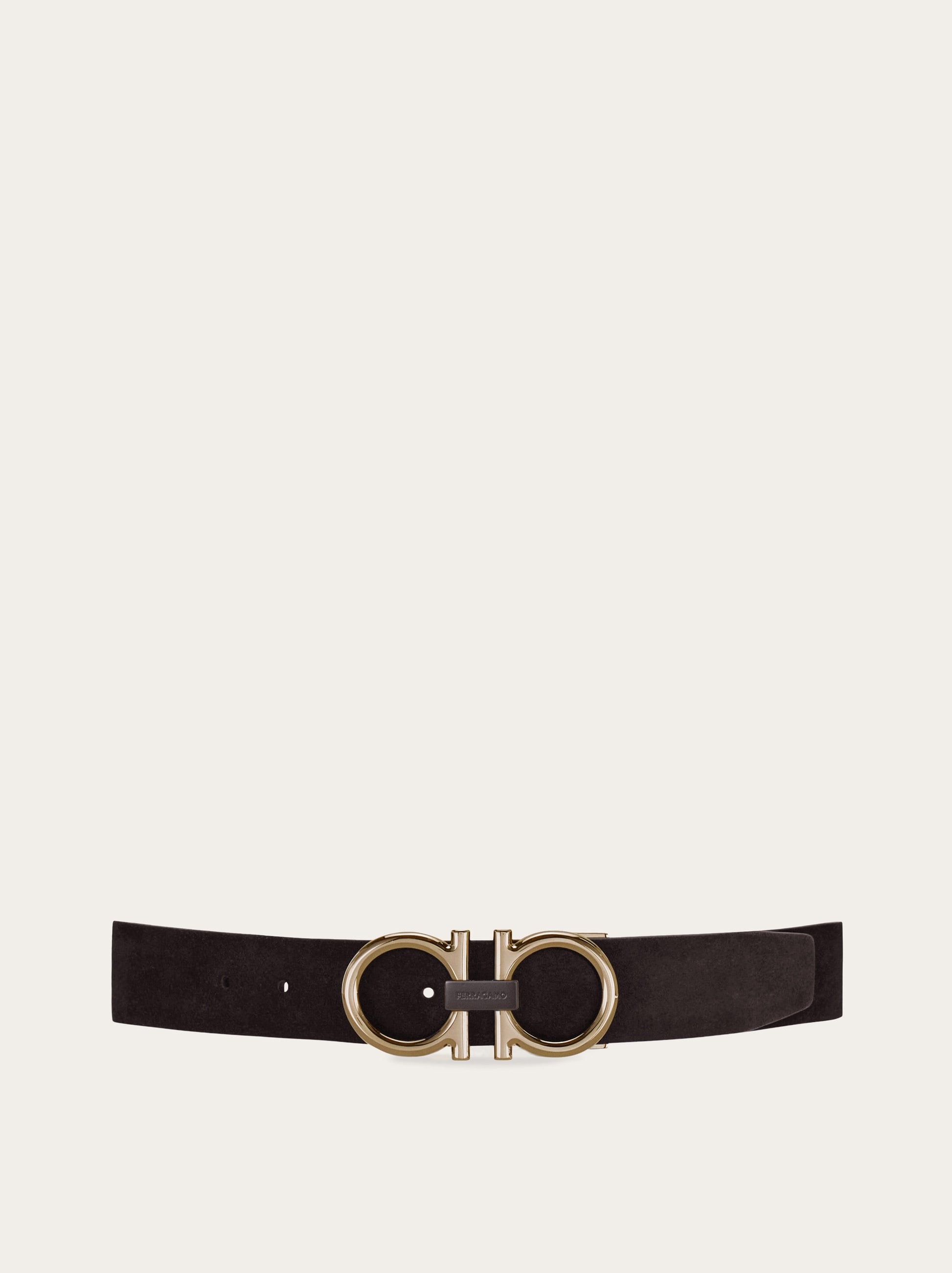 Exuding smart-casual sophistication, this belt is beautifully crafted from supple calf suede. Notice the softly rounded Gancini buckle in a golden finish that brings a modern twist to the signature silhouette. The adjustable length allows for a more personalized fit and style. We invite you to check our size guide for more information. - height 1.3 IN - Composition: calfskin suede - Made in ITALY - Product code: 679955 782993