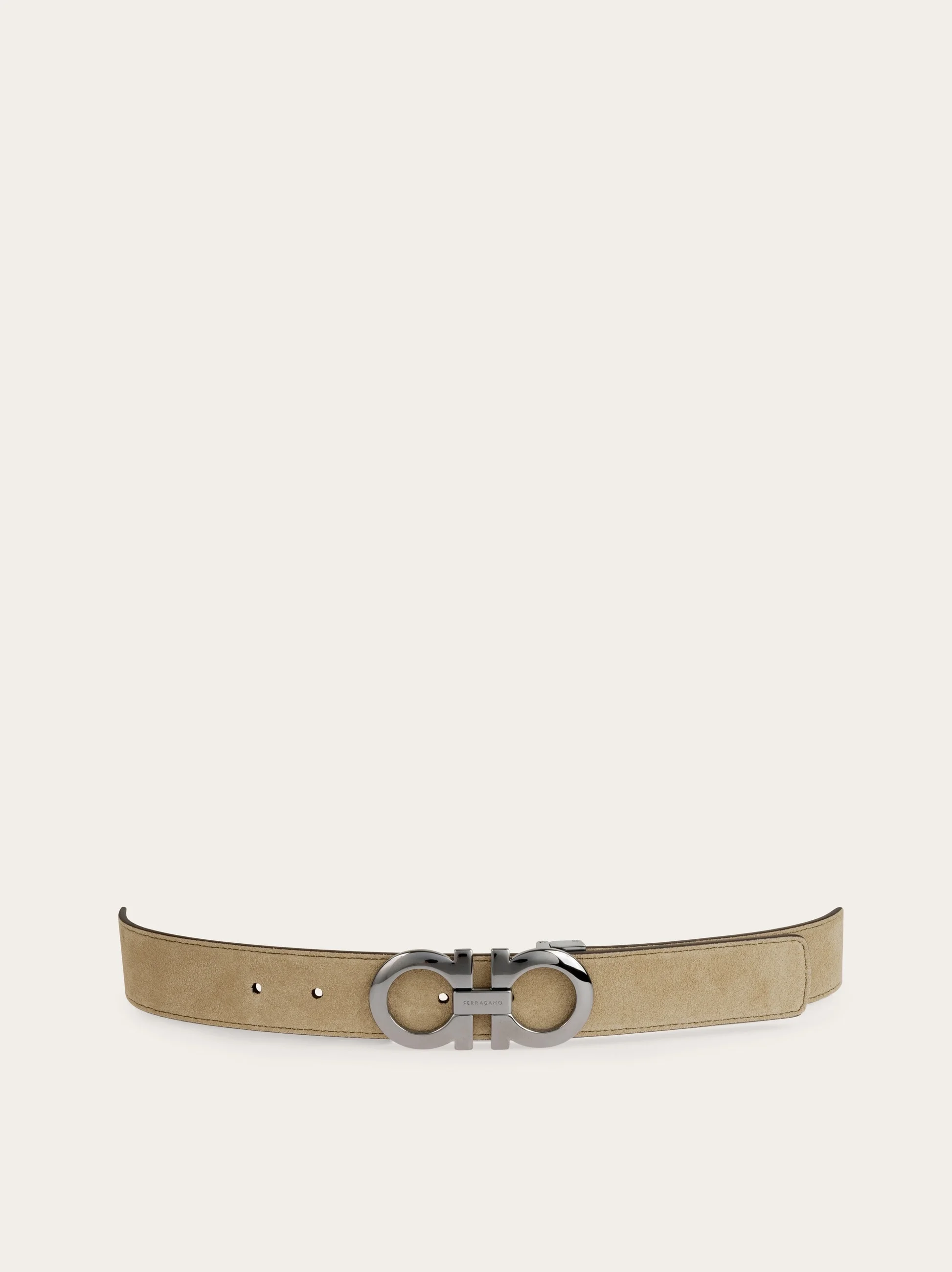A luxurious take on the Ferragamo belt, crafted from soft suede with a sleek, squared profile. Its vibrant hue adds a modern edge to any look. The adjustable length allows for a more personalized fit and style. We invite you to check our size guide for more information. - height 1.3 IN - Composition: calfskin suede - Made in ITALY - Product code: 675544 791944