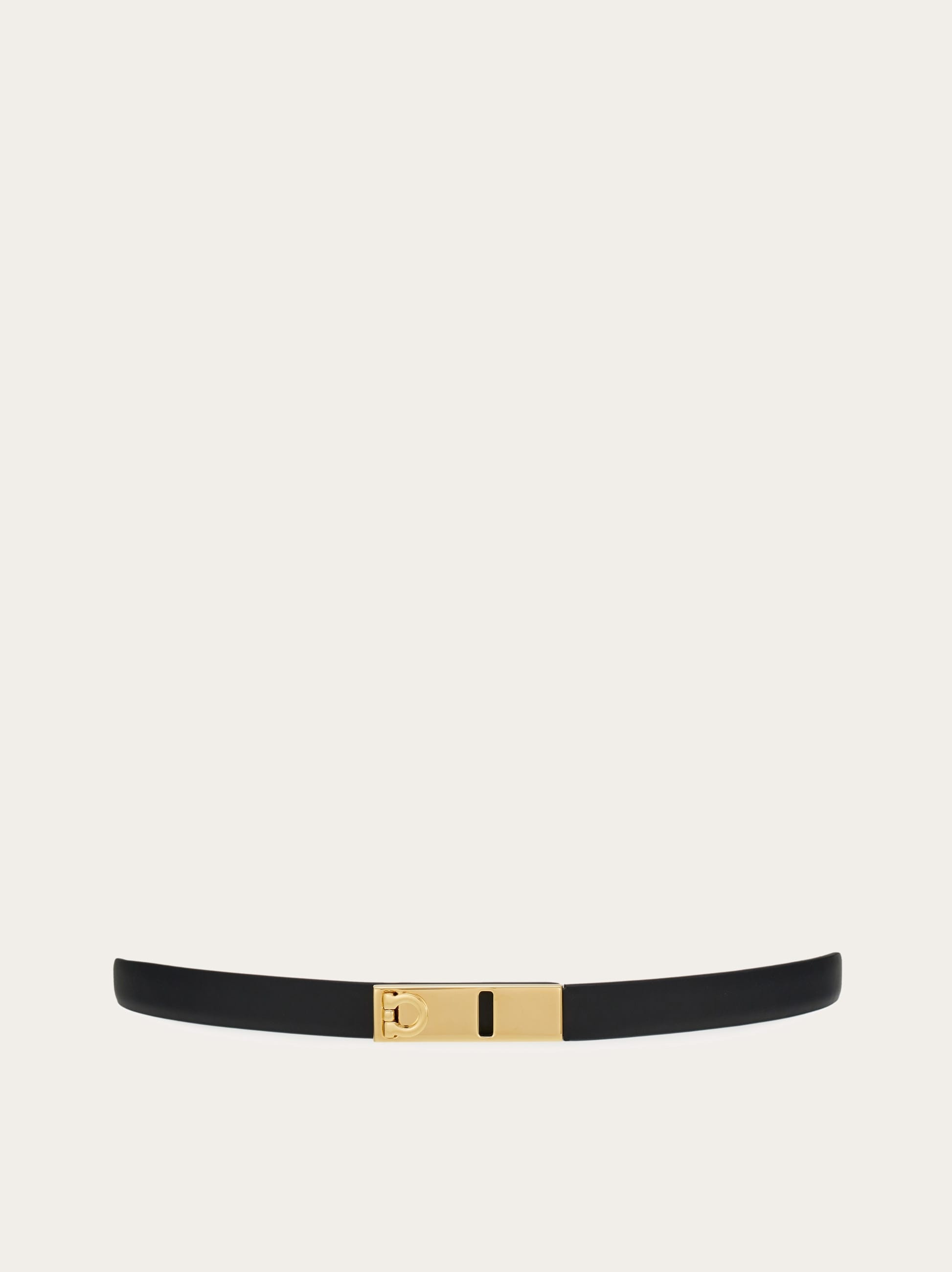 Subtle for an extra touch of femininity, this extendable belt has a shaft in soft, naturally textured calfskin. The geometric buckle with gold-plated Gancini is inspired by the Hug collection, a play on aesthetic references with a refined vibe. The back slider construction allows you to customize the fit for perfect styling every time. - height 0.7 IN - Composition: calfskin - Made in ITALY - Product code: 230332 775549