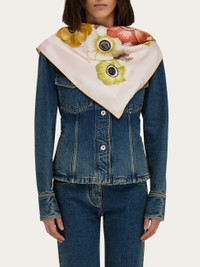 The Anemone print, a floral archive pattern, is introduced with new proportions and a play of contrasting colors for a romantically hearted motif. The result is a versatile scarf, radiant in its shades, and contemporary in its contrasting color treatment. - length 35.4 IN width 35.4 IN - Composition: 100% silk - Made in ITALY - Product code: 310175 786602