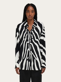 Inspired by a portrait by photographer Karen Knorr, the new interpretation of the zebra print is emblazoned all over this long sleeved shirt made of pure silk. The slightly oversize cut features a dropped shoulder and longer length at the back. - Composition: 100% silk - Made in ITALY - Product code: 13I027 790950