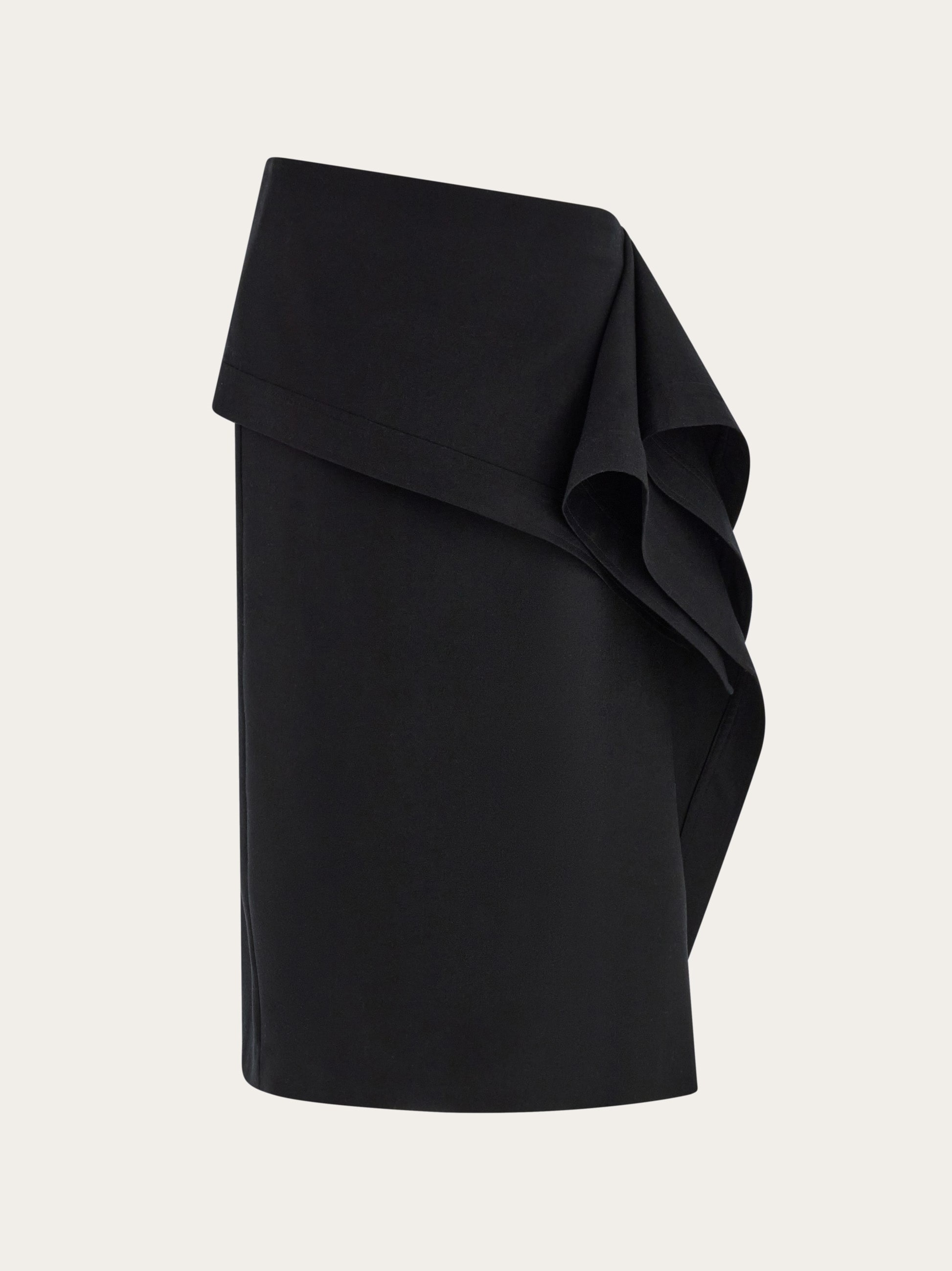 Conceptual evolution of the pure wool flannel skirt with a turned up peplum at the waist that duets with the scarf detail. The large diagonal panel that crosses the waist gathers at the left side where voluminous folds gently drape and swoosh with every step. Pair with collection sandals and cashmere for an unexpected combination that is both effortless and chic. - Composition: 100% pure virgin wool - Model measurements: Height 5' 9"/175 cm; Bust 30"/76 cm; Waist 24"/61 cm; Hips 34½"/87 cm - Model wearing: 38/XS - Made in ITALY - Product code: 13H319 785522