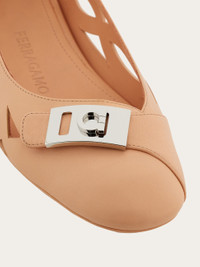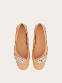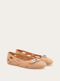 A feminine ballerina with a sustainable soul, featuring a rounded toe and perforated calfskin upper. The toe strap is adorned with the Hug buckle, crafted from 100% recyclable steel. Made from Italian vegetable-tanned leather sourced through a short supply chain, the upper reflects a commitment to responsible craftsmanship. The insole combines recycled fibers, cellulose from responsibly managed forests, and an innovative natural fiber infused with resins. Finished with a bio-based rubber sole for an eco-conscious touch. - Composition: calfskin - Made in ITALY - Product code: 01K735 787132