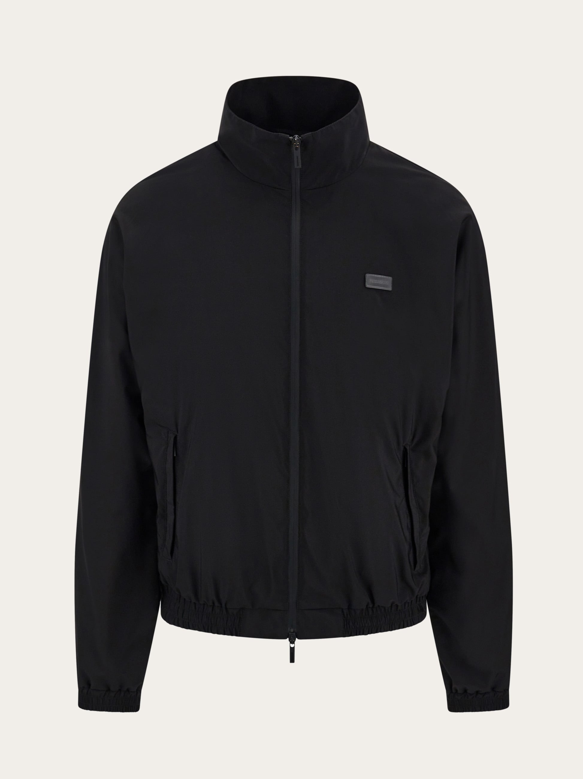 Urban style blouson jacket in luxurious blend of wool faille. The clean cut silhouette features a raised collar, with two-way zip and elasticated cuffs and hem. A custom rubber tab on the chest, and contrasting jersey lining complete the design. - Composition: 64% pure virgin wool, 36% polyamide - Made in ITALY - Product code: 144660 785026