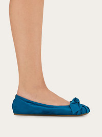 Easy chic with an exotic twist, as seen through the lens of Maximilian Davis. Gathered folds are draped over the toe of this ballet flat, and tied in a voluminous bow enhancing the sumptuous texture of the soft satin upper in bright hues. At the back, a tiny Gancio buckle seals the deal. The flexible rubber sole ensures maximum comfort with every step. - Composition: fabric - Made in ITALY - Product code: 01L425 791708