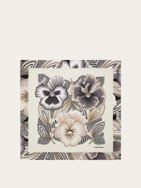 A faithful reproduction of an archival Ferragamo design, this pure silk twill scarf celebrates the elegance of florals. Three oversized blossoms—symbols of femininity and artistic creativity—take center stage, framed by bold blocks of color for a striking finish. Stylized leaves and delicate botanical strokes add depth and richness, brought to life through a vivid, expressive palette. - length 35.4 IN width 35.4 IN - Composition: 100% silk - Made in ITALY - Product code: 310227 789958