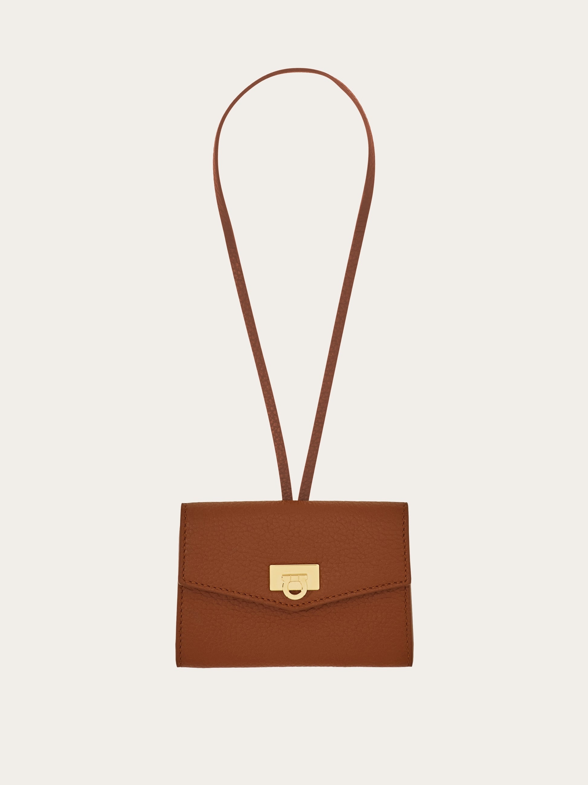 A chic little charm in grained calfskin, doubling as a sleek cardholder and finished with a gold-tone Gancini buckle. Clip it onto your favorite bag for a stylish, personal touch. - height 2.9 IN length 4.3 IN width 0.7 IN - Composition: hammered calfskin - Made in ITALY - Product code: 220979 785952