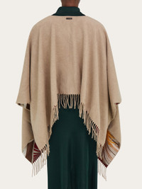Timeless in shape and rich in detail, this reversible cape features a warm, soft cashmere exterior and a printed silk twill lining showcasing the Giada pattern. Finished with a shawl collar and hand-twisted fringe along the hem for an elegant flourish. - length 61.0 IN width 53.1 IN - Composition: 95% cashmere, 5% wool - Made in ITALY - Product code: 321198 788146
