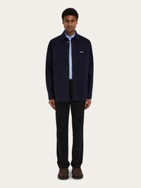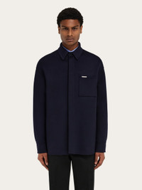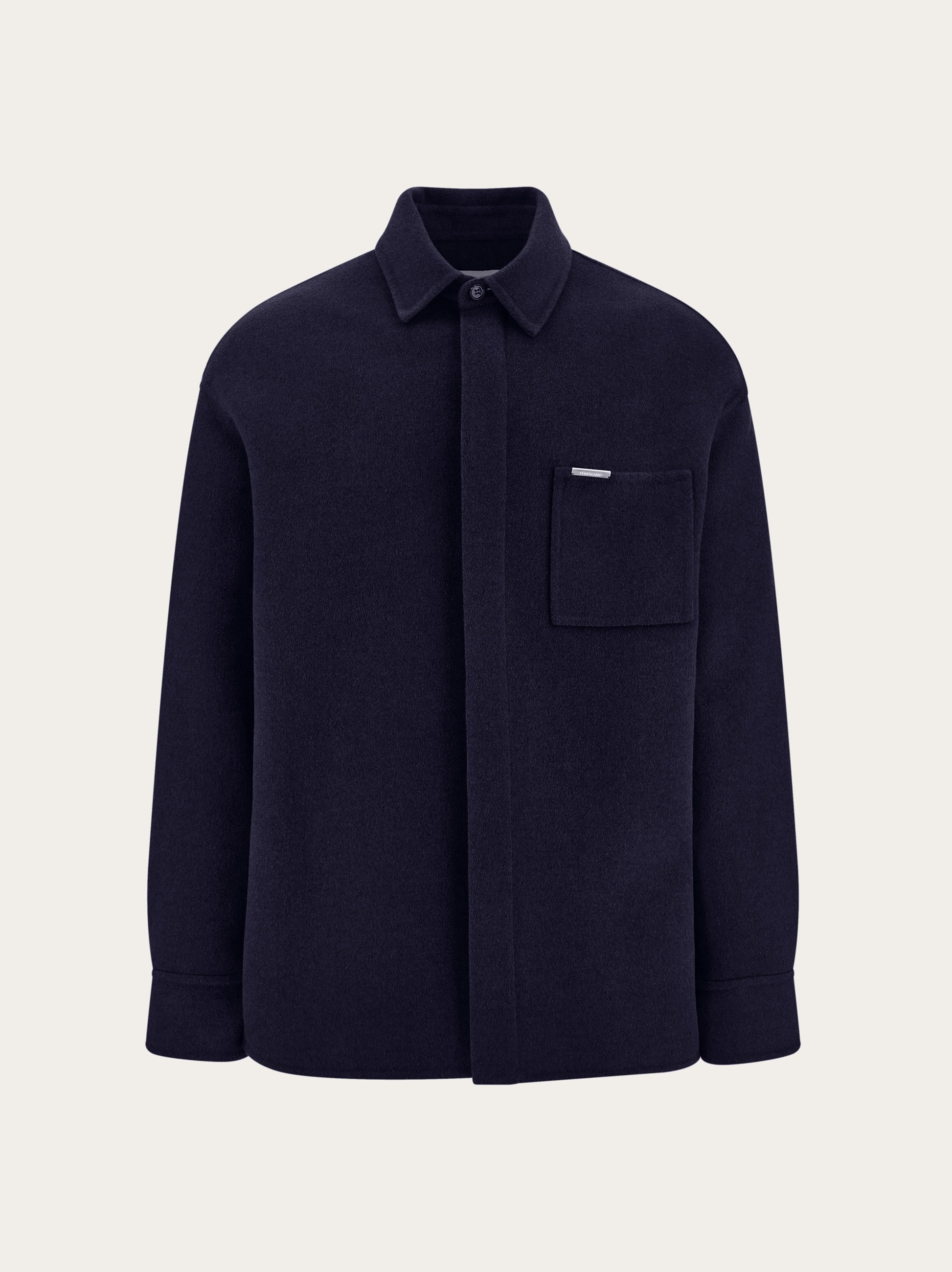 A hybrid and versatile garment, this light jacket is inspired by classic shirting. Made from unlined virgin wool and cashmere, it features a shirt collar, covered button placket, and asymmetrical rounded hem that's slightly longer at the back. The chest patch pocket is decorated with a customized metal tag. - Composition: 85% virgin wool, 15% cashmere - Made in ITALY - Product code: 144280 780743