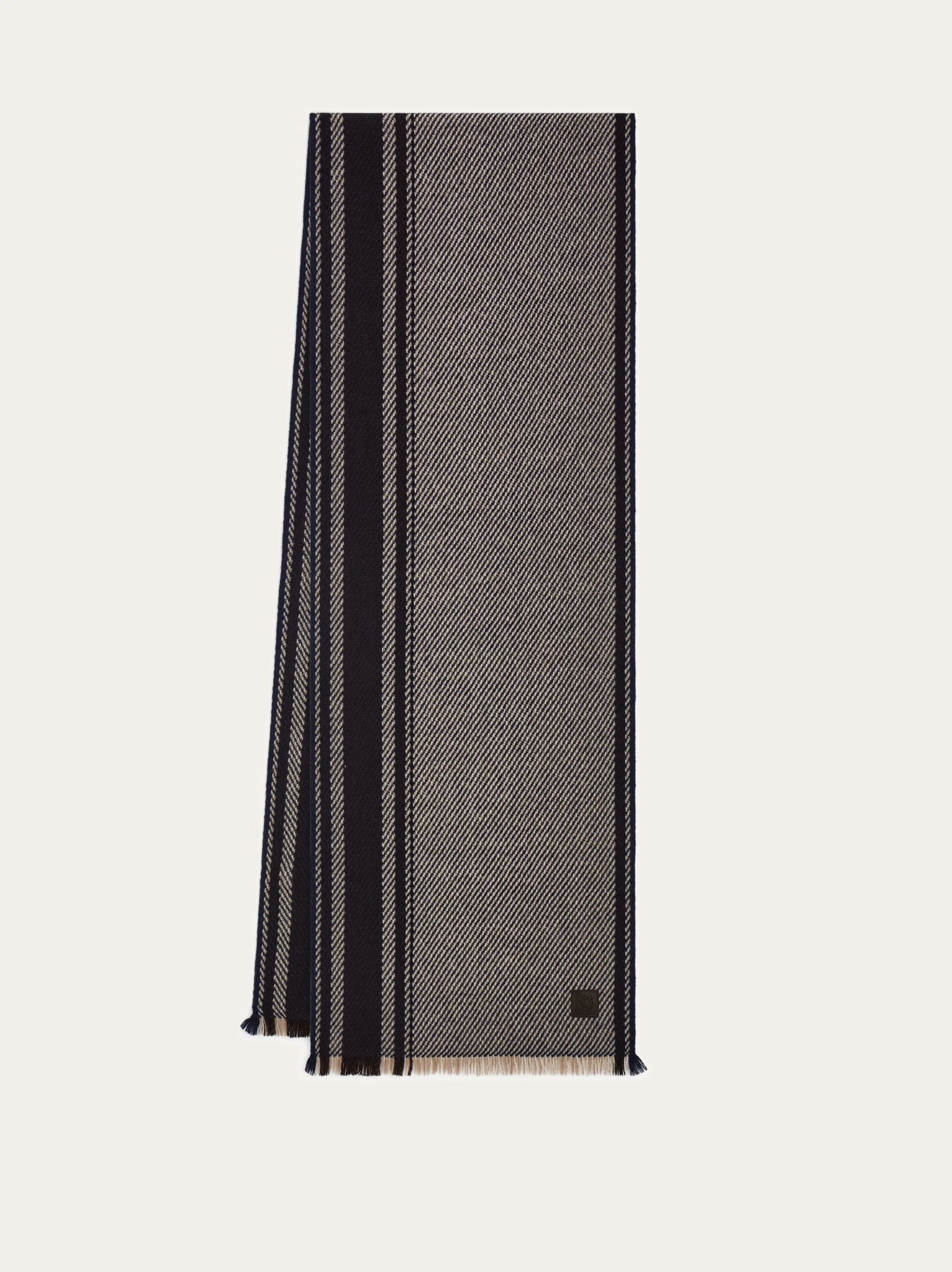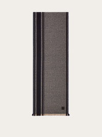 Pure cashmere jacquard scarf adorned with a subtle diagonal texture. Designed with vertical multicolor stripes, short fringe trim, and a custom Gancini tag for a signature finish. - length 78.7 IN width 13.7 IN - Composition: 100% cashmere - Made in ITALY - Product code: 520156 789165
