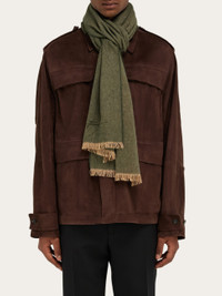 Metropolitan flair and a touch of classic elegance define this cashmere scarf. The chevron pattern is complemented by long bangs at the bottom and signature embroidered contrasting thread. - length 90.5 IN width 13.7 IN - Composition: 95% cashmere and 5% pure virgin wool - Made in ITALY - Product code: 520126 779257
