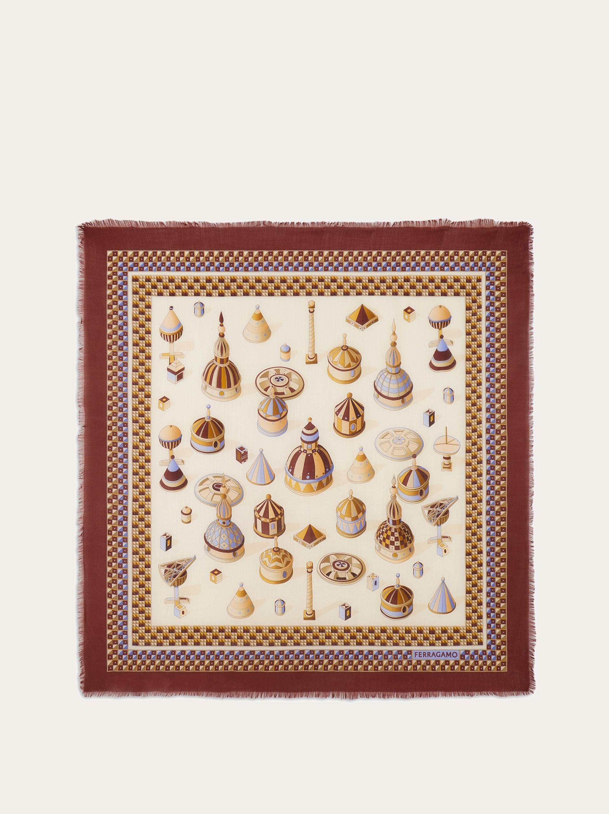 Soft and ultra-lightweight, the cashmere shawl is the sophisticated accessory for wearing every day. This version is decorated with the Nadir print, a mix of geometric and architectural elements inspired by Renaissance aesthetics. - length 55.1 IN width 55.1 IN - Composition: 100% cashmere - Made in ITALY - Product code: 320977 780038