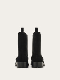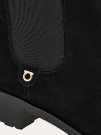 A much loved silhouette with a cozy, luxurious feel, this Ferragamo Chelsea boot is a timeless classic. Cut from the softest suede, it features textbook elastic inserts at the ankles with a small golden Gancio tab. Rubber sole with chunky tread. - Composition: calfskin suede - Made in ITALY - Product code: 01K744 787634