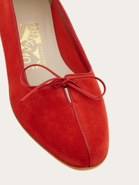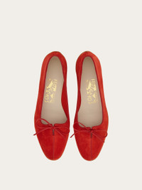 Originally envisioned by Salvatore Ferragamo in 1958, this suede ballet flat model was created for the legendary actress Marilyn Monroe. Adorned with a delicate tie and featuring a distinctive shell-shaped sole, the ballet flat is a combination of vintage charm and timeless sophistication. - Composition: goatskin - Made in ITALY - Product code: 01I093 772453