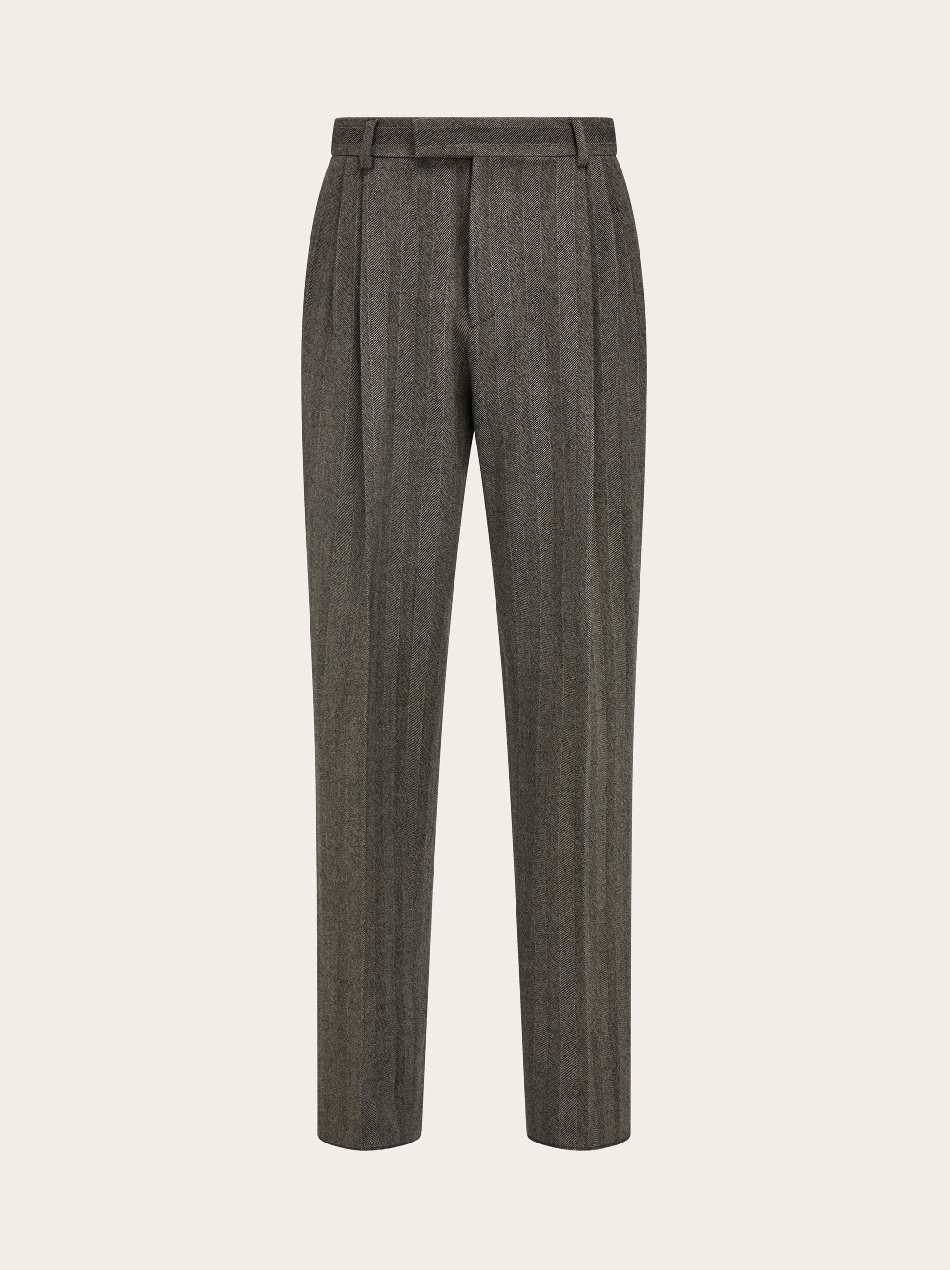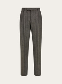 Tailored trousers with a soft volume on the leg, three darts at the waist, and a taper towards the ankle. The coolest of silhouettes features a custom internal belt and double hook fastening with asymmetrical tab. - Composition: 92% pure virgin wool, 6% polyamide, 2% elastane - Made in ITALY - Product code: 144871 788136