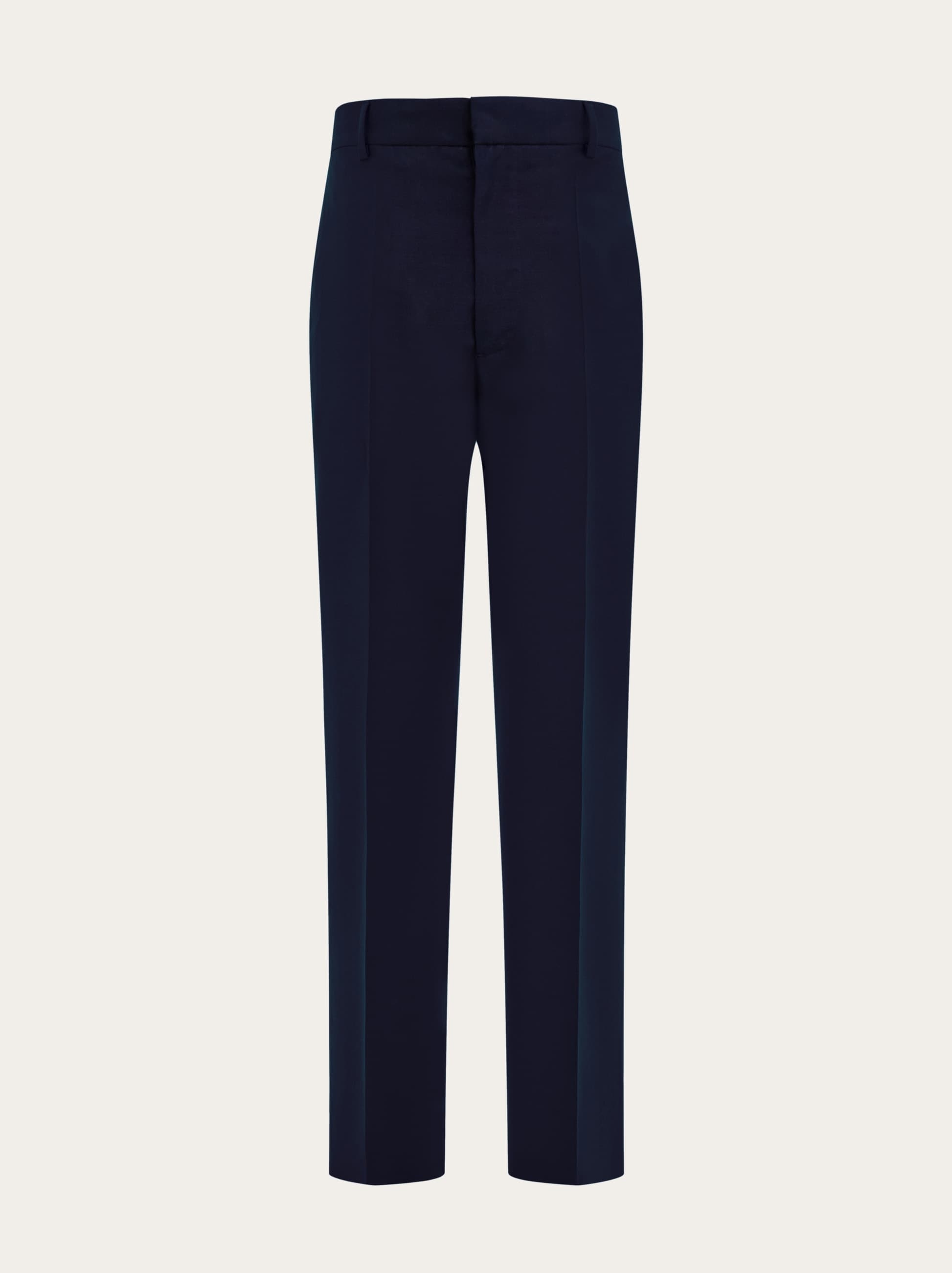 Designed to combine comfort and style, these solid-color trousers in organic cotton canvas have a brushed, slightly velvety texture. The classic construction includes side pockets inserted along the seams, a horizontal coin pocket, and welt pockets on the back. A pressed pleat runs the length of the leg, while the waistband fastens with a hidden hook. The small metal tag on the back is a signature detail. - Composition: 100% organic cotton - Made in ITALY - Product code: 144321 780691