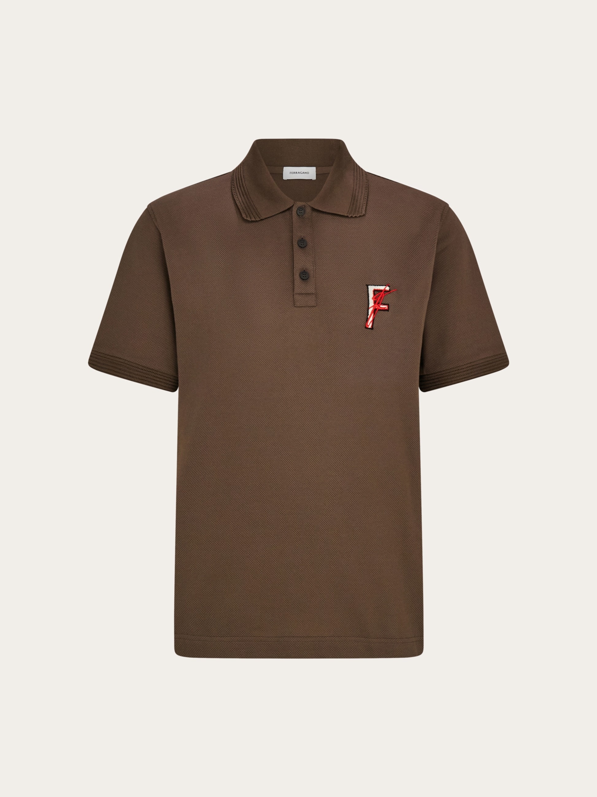 More than just a polo shirt when signed by Ferragamo. This gentlemen’s classic features an embroidered capital F on the chest with overlapping signature. Textbook details include a three button ribbed collar and rib trims on the sleeve. Made of organic cotton, it is ideal for leisure looks, or to add a relaxed feel to workwear. - Composition: 100% cotton - Made in ITALY - Product code: 122418 783744