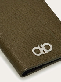 Elegant and practical with a compact design, this new credit card holder in hammered calf leather has a contrasting interior for a modern color pop. Slots on both the inside and outside ensure the best use of space for the gentleman on the go. The iconic Gancini in a palladium finish graces the front. - height 3.7 IN length 6.2 IN - Composition: hammered calfskin - Made in ITALY - Product code: 660371 779753