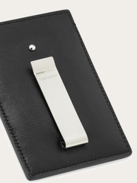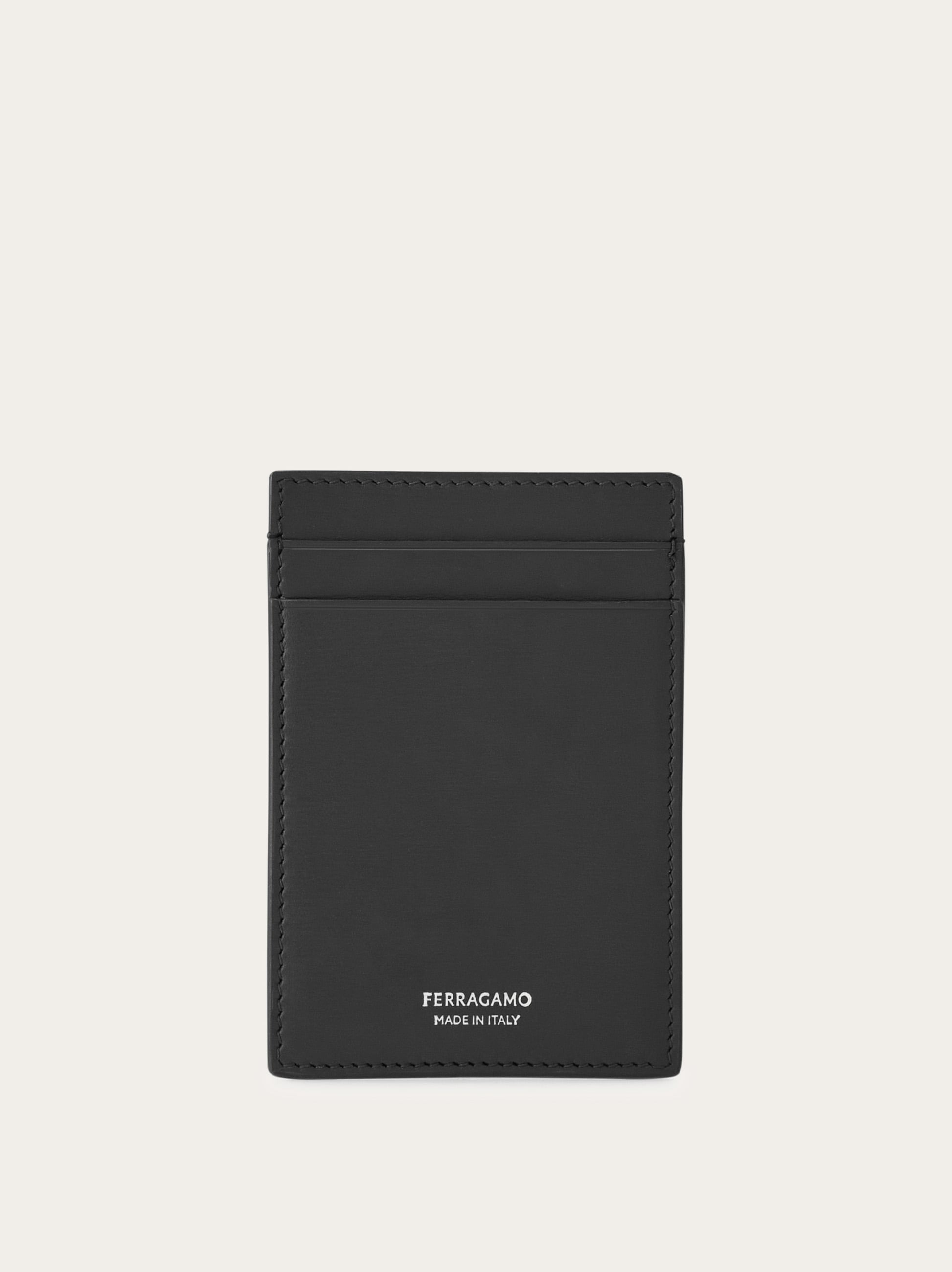 A fresh take on the Ferragamo cardholder, designed with a vertical silhouette and a back strap that easily slides onto a belt or bag. Crafted from palmellato calfskin, it’s finished with a palladium-tone logo on the front for a signature touch. - height 4.1 IN length 2.8 IN - Composition: palmellato calfskin - Made in ITALY - Product code: 661671 787013