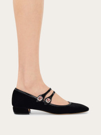 A fashion favorite re-edited in a high glam key. This new Mary Jane has a smooth velvet upper with two cabochon crystals on the patent straps. Patent trims and a squoval shaped toe complete the design. - Composition: fabric - Made in ITALY - Product code: 01K829 787855