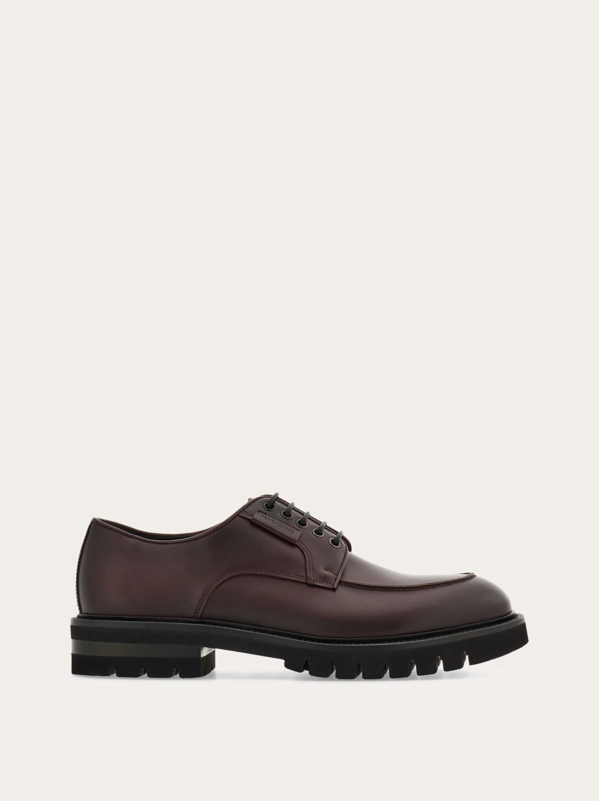 Contemporary sophistication with a touch of urban grit. This new urban lace up features a rounded profile with stitched vamp and custom tab at the side of the instep. The buffed, rich texture of the calfskin leather confirms a luxurious feel. Leather and rubber sole with custom lug tread. - Composition: calfskin - Made in ITALY - Product code: 02A596 788841